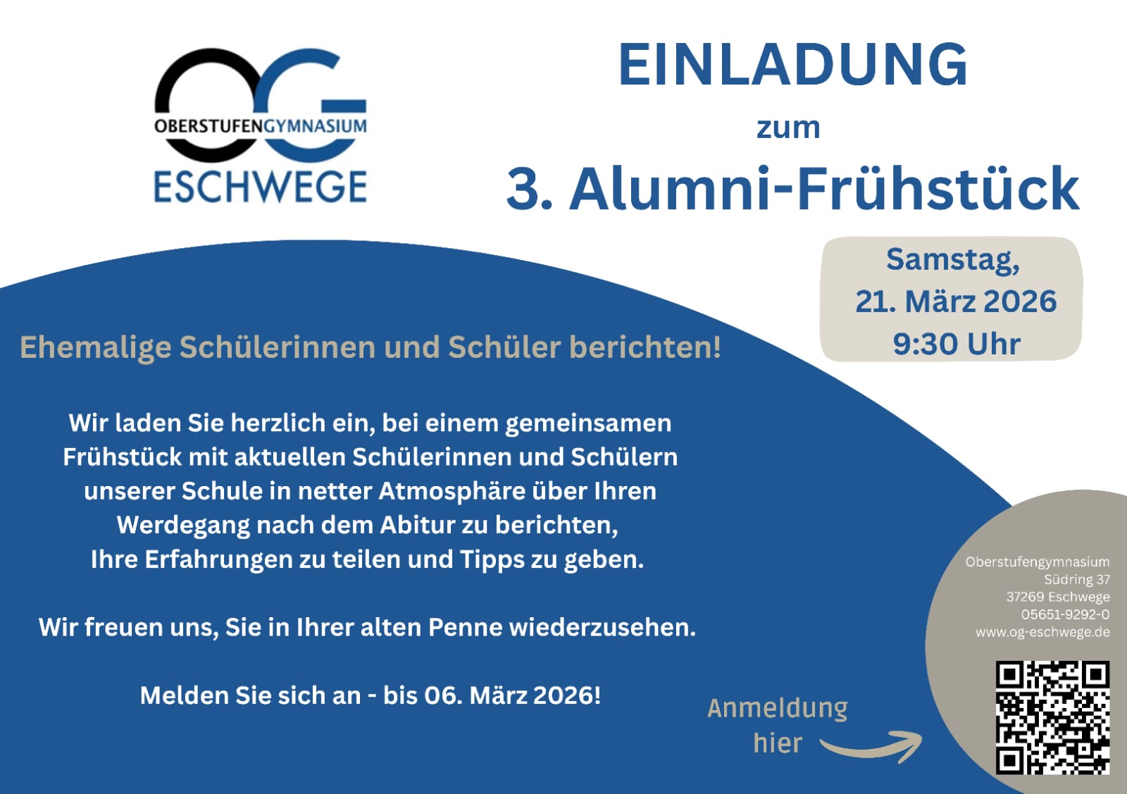 Am vergangenen Samstag fand am Oberstufengymnasium Eschwege eine besondere Veranstaltung statt: das Ehemaligen-Frühstück. Ehemalige Schülerinnen und Schüler trafen auf die aktuelle Schülerschaft, um in entspannter Atmosphäre über ihren Werdegang nach dem Abitur zu berichten, Erfahrungen zu teilen und wertvolle Tipps zu geben. Die eingeladenen Alumni befinden sich in den unterschiedlichsten Phasen ihres Lebens: Einige studieren bereits, andere haben ihr Studium abgeschlossen und sind ins Berufsleben gestartet. Wieder andere absolvieren eine Ausbildung oder haben eine Zeit im Ausland verbracht. So waren zahlreiche Fachrichtungen vertreten – von Naturwissenschaften und Technik über Geisteswissenschaften bis hin zu wirtschaftlichen und sozialen Berufen.
