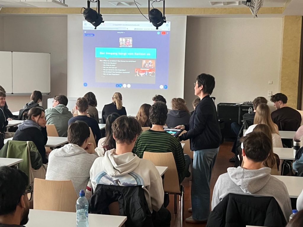 Trotz des Online-Formats entwickelte sich ein lebendiger Austausch. Die Schülerinnen und Schüler konnten Fragen stellen und eigene Beobachtungen aus Medien und Alltag einbringen. Der Vortrag machte deutlich, wie relevant ein bewusster und kritischer Umgang mit Sprache gerade in Zeiten sozialer Medien und polarisierter Debatten ist.